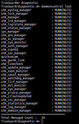 >daemoncontrol list --- 프로세스 확인
